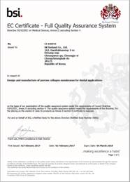 ● 英 왕실인정기구 BSI로부터 국내 기업 최초 치과용 콜라겐 멤브레인 제품 CE 인증 획득