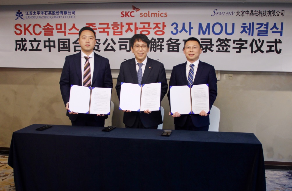 “The current MOU is highly significant in that a bridgehead has been secured for SKC Solmics to explore the Chinese market while preemptively responding to the rapidly growing semiconductor parts market in China,” said SKC Solmics CEO Junrok Oh. “Once the joint venture company has been founded, great synergy will be generated by combining the technological competence of SKC Solmics with the high-quality raw materials of the two Chinese companies.”