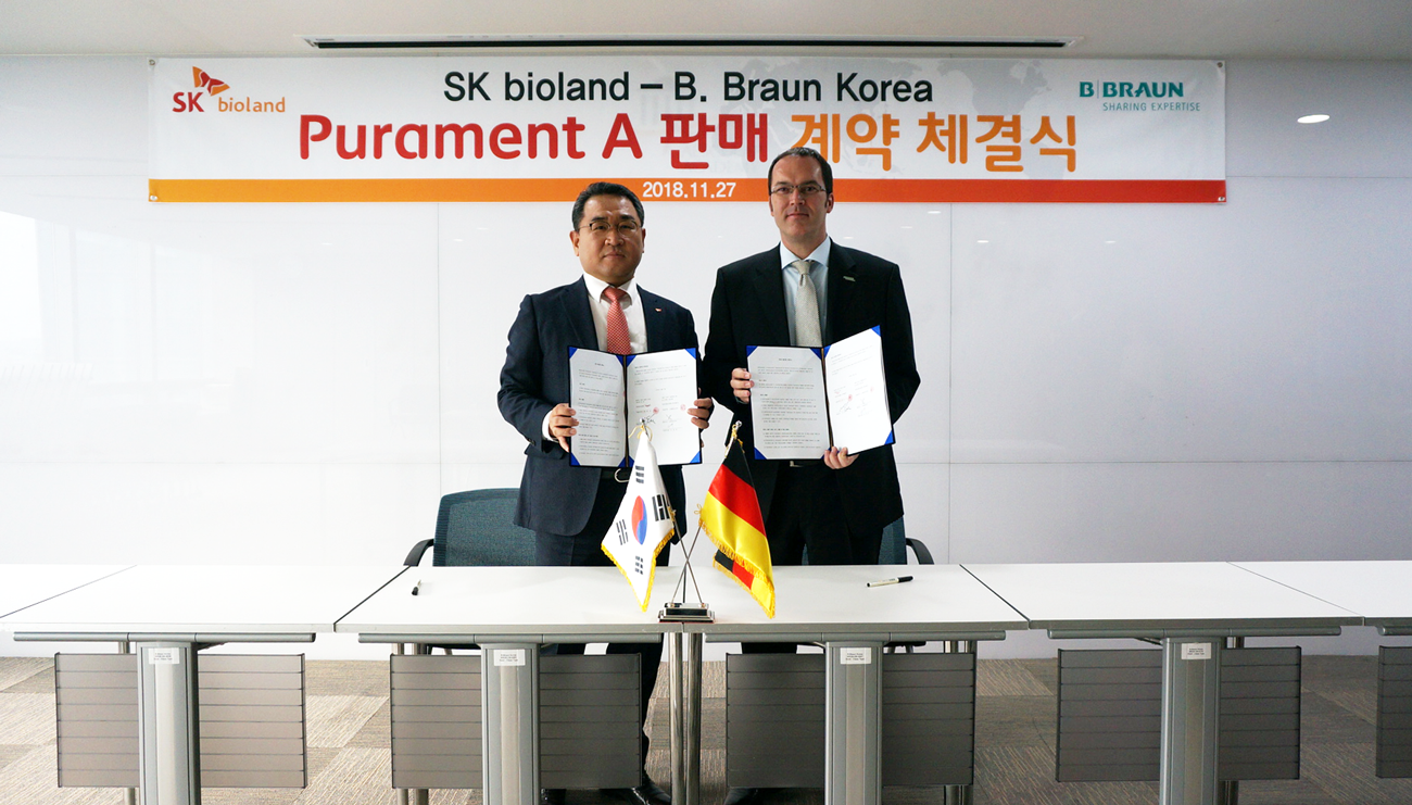 SK bioland signed an agency agreement with Germany-_ base_d B. Braun Korea on the sales of sterile bone cement (Purament-A®). Under the agreement, B. Braun Korea will exclusively sell SK bioland sterile bone cement in Korea for the next three years. B. Braun is a medical appliance company that produces and supplies over 5,000 professional medical appliances and supplies throughout the world, including orthopedic, neuro-surgery, cardiovascular, and dialysis.